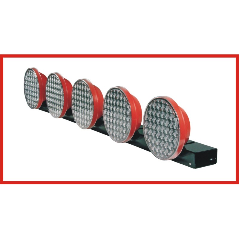 Barra del traffico a 5 Proiettori LED per segnalazione stradale, omologati UNI EN 13252 classe L8H, con centralina esterna per lampeggio flash o direzionale destra e sinistra Dimensioni: lunghezza: cm 130 diametro: cm 19,8 Caratteristiche: - lampeggio flash o direzionale destra e sinistra - centralina esterna - potenza in asse a luce fissa: 2300 cd - alimentazione: 12 o 24 V Caratteristiche Tecniche e Omologazioni: Impiego Operativo: Luci LED BLITZ (bliz) lampeggianti per veicoli da lavoro autostradali, sfalcio erba, gestione del traffico che operano in condizioni di scarsa visibilità o su strade ed autostrade. Segnaletica luminosa da cantiere ad alta visibilità adatta per tutti gli impieghi di legge e in condizioni di scarsa visibilità ed altro, a norma di codice della strada. Il colore ambra / arancione intenso, di norma per tutti i veicoli da lavoro e di soccorso stradale ed autostradale, segnaletica stradale luminosa, cartellonistica stradale, garantisce visibilità ed attenzione immediata da parte dei veicoli che sopraggiungono.