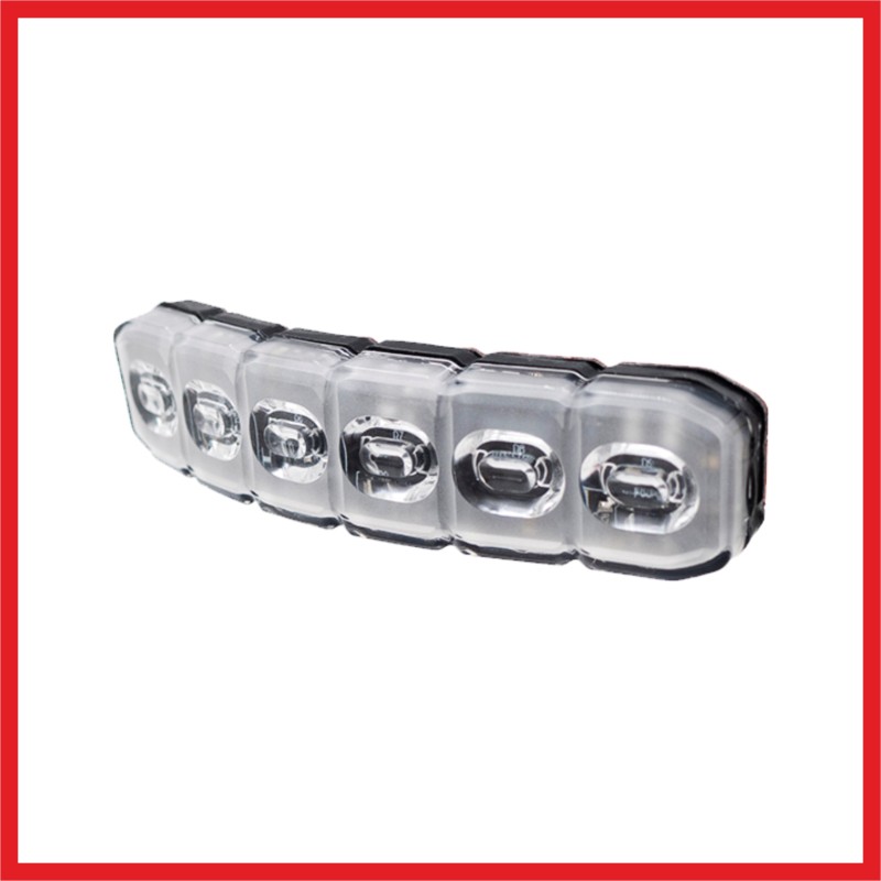 Faretto LED FLESSIBILE da esterno con 6 LED ultra potenti da 3W - 12 pattern di lampeggio - luce di crociera - Voltaggio: 12/24VDC, - assorbimento: <1,8A - potenza: 9x3W Lunghezza: 131 mm; altezza: 28,9 mm; spessore: 29,8 mm