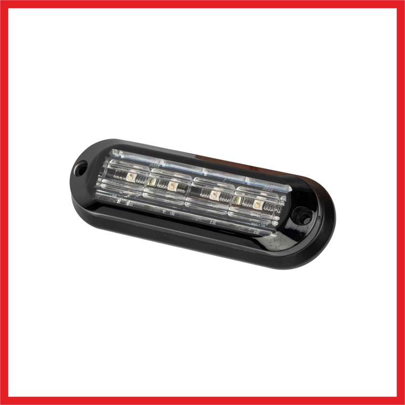 Faretto LED da esterno con 4 LED ultra potenti da 3W - 12 pattern di lampeggio - luce di crociera - Voltaggio: 10~30VDC, - assorbimento: <1A - potenza: 4x3W Dimensioni: Lunghezza: 107,4 mm; altezza: 36 mm; spessore: 14 mm