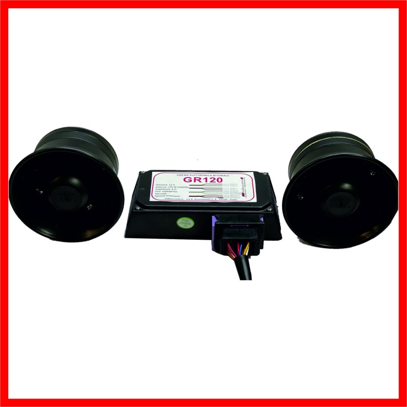 Sirena elettronica bitonale GR120 INDIAUNOZERO, avvisatore acustico utilizzato su tutti i veicoli di emergenza, urgenza, ambulanza, protezione civile, veicoli speciali, automedica, vigili del fuoco, polizia locale, forze dell'ordine, scorta tecnica. Categorie: Sirena, siren, sirene, sirène
