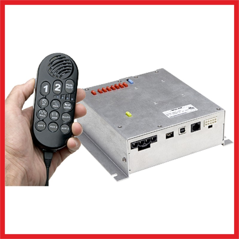 Sirena elettronica multitono americana WHELEN con controller multifunzione, radio e amplivoce. La centralina sirena con controller 12 tasti può controllare qualsiasi tipo di barra lampeggiante e funzioni accessorie (fino a 9 uscite da 10A) oltre a 3 tasti per il comando della sirena, amplivoce esterno e funzione radio. - sirena 100W con possibilità di collegare fino a 2 speaker da 100W. - Controller/microfono 12 tasti retroilluminati multifunzione - suoni: bitonale soccorso, polizia e 3 toni americani (wail, yelp e pier) - suono Horn - 12 tasti programmabili - 9 uscite da 10A