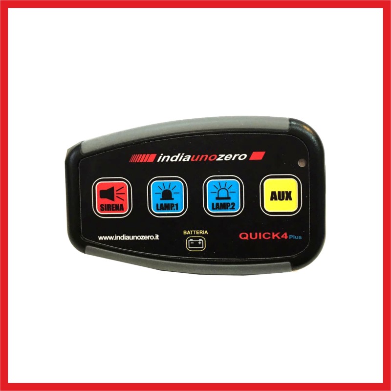 Centralina di controllo 4 tasti retroilluminati a doppia luminosità e segnale acustico, microcontrollore con tecnologia MOSFET, programmazione funzioni inbuilt. Carichi a controllo elettronico con protezione automatica da cortocircuito e ripristino manuale. - 4 canali con uscita al positivo - 8/16V tensione di funzionamento (24V a richiesta + € 10,00) - Protezione da inversione di polarità (10 sec.) - sensore di luminosità - indicazione di conferma acustica - Funzione EMERGENZA - attivando la sirena si abilita anche il canale dedicato al lampeggiante primario - Funzione energy saving per il risparmio della batteria - dimensioni: lungh. 85,90 mm; alt. 47,1 mm
